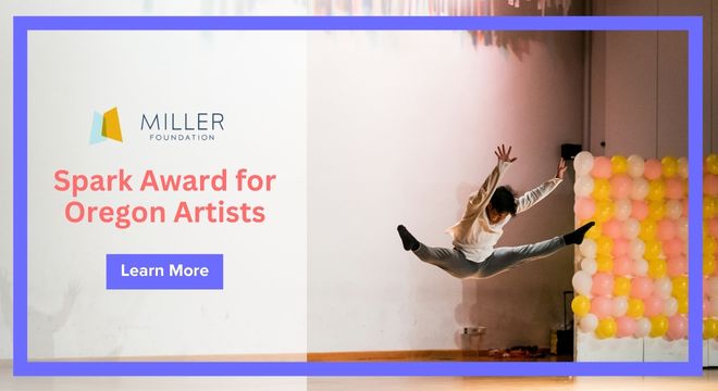 The James F. and Marion L. Miller Foundation is pleased to announce the Spark Award for Oregon Artists, a three-year pilot program to fund individual artists at a midpoint of their career. The Foundation will award grants of $25,000 each to 60 individual artists in total (20 grants per year) across artistic disciplines. The goal of this program is to sustain and advance the practice of working artists in Oregon. We consider this an important investment in both artists and the communities throughout our state who will continue to be enriched by these artists’ work into the future.